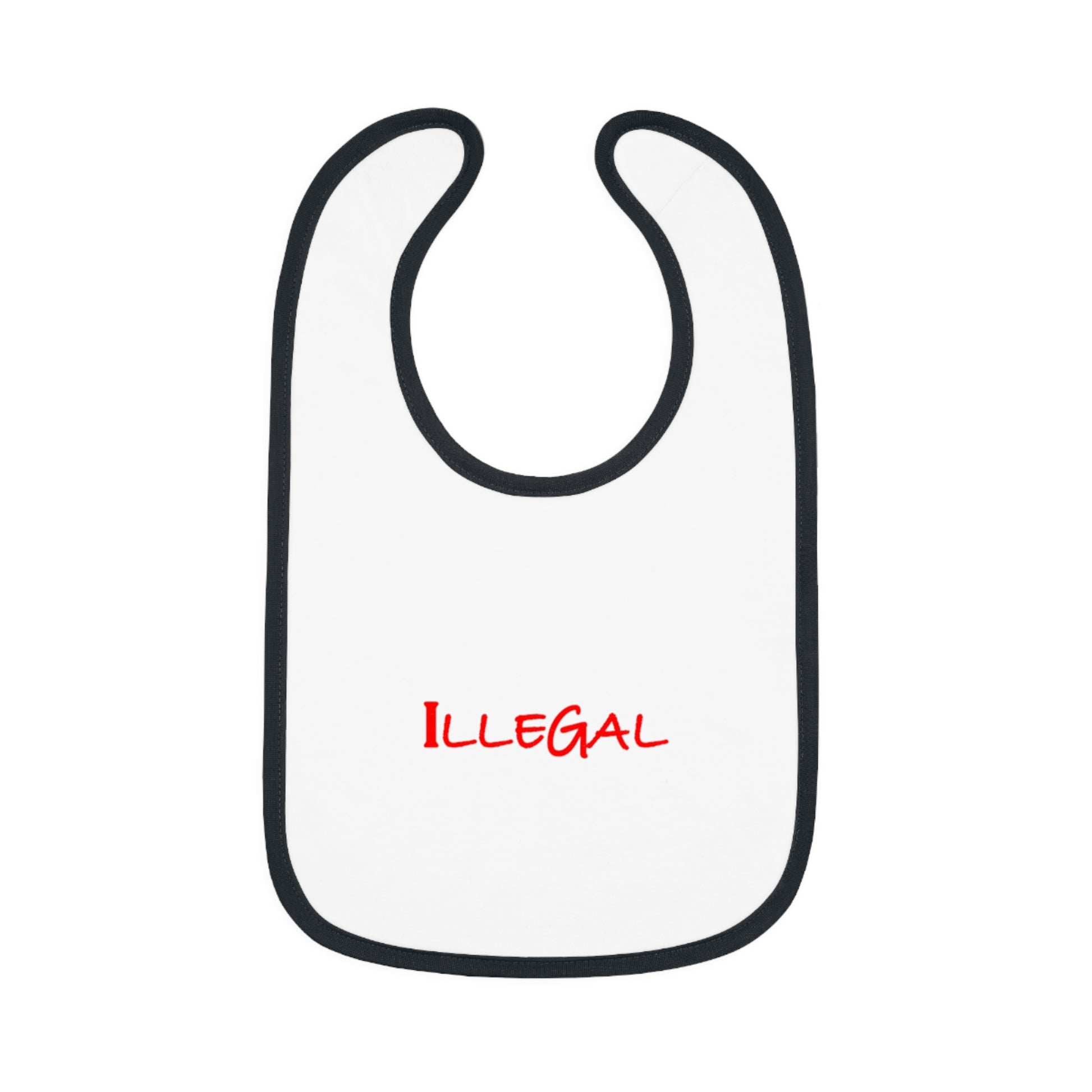 This Illegal Baby Bib brings a touch of humor and rebellion to your little one's mealtime. Made from 100% combed and ringspun cotton for comfort and durability. The velcro closure allows for easy adjustments and the self-fabric binding adds a stylish contrast. Perfect for parents with a sense of humor and looking to add a fun element to their baby's outfit. Ideal for baby showers, birthdays, and everyday use.